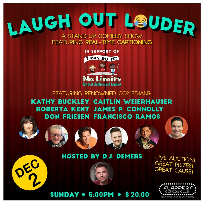 Join us for a great night of comedy at Flappers Comedy Club to benefit low-income deaf children and their families! Doors open at 4pm for a 5pm showtime. CART captioning will be provided.